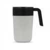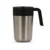 Dobbeltvæg kaffekrus med låg. Rustfrit stål på ydersiden, PP på indersiden. Dette design holder kaffe/te varm længere pga. dobbelte væg og låget som har åbning til at drikke af, den kan lukkes. Leveres i gaveæske.