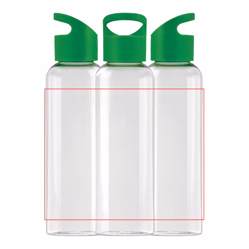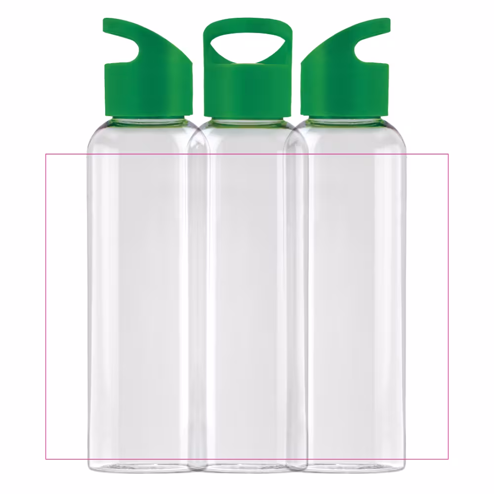 Enkelt vægget drikkeflaske med volume på 600ml. Lavet af R-PET materiale og BPA-fri. Flasken er velegnet til kolde ikke kulsyreholdige drikke.